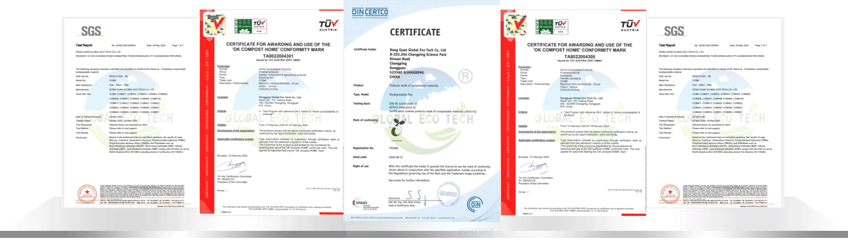 東莞全球環(huán)保科技有限公司總部位于東莞東部地區(qū)、公司致力于全生物降解材料和全生物降解秸稈復(fù)合材料的生產(chǎn)研發(fā),專業(yè)提供全生物降解 CCBM系列材科,PBAT、PBS、PLA樹脂及全生物降解膜袋、筒膜、餐具覆膜、阻隔膜、復(fù)合包裝膜、衛(wèi)生巾膜等產(chǎn)品。給塑料制造商和消費(fèi)者提供一站式全品類的解決方案和技術(shù)支援。產(chǎn)品已通過(guò)德國(guó)DIN CERTCO、歐洲TUV公司OK compost HOME認(rèn)證、國(guó)標(biāo)認(rèn)證GB/T19277.1-2011:符合歐盟EN13432、美國(guó)ASTMD6400、 BPI、澳洲ABA堆肥降解檢測(cè)標(biāo)準(zhǔn),并通過(guò)SGS公司檢測(cè)的FDA食品接觸安全測(cè)試、ROHS有害物質(zhì)檢測(cè)、REACH檢測(cè)。我司獲得國(guó)家高新技術(shù)企業(yè)認(rèn)證、通過(guò)了GRS驗(yàn)廠并且取得了GRS認(rèn)證,產(chǎn)品熱銷于歐洲、美國(guó)、亞洲等30多個(gè)國(guó)家。